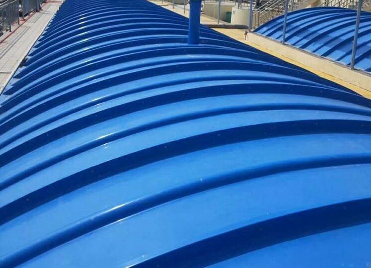 污水池拱形蓋板輕質(zhì)高強,安裝方便;抗紫外線:玻璃鋼拱形蓋板表面噴涂三遍彩色膠衣樹脂,彩色膠衣樹脂中含有高強抗紫外線劑以獲得良好的抗紫外線效果,長年使用不褪色。